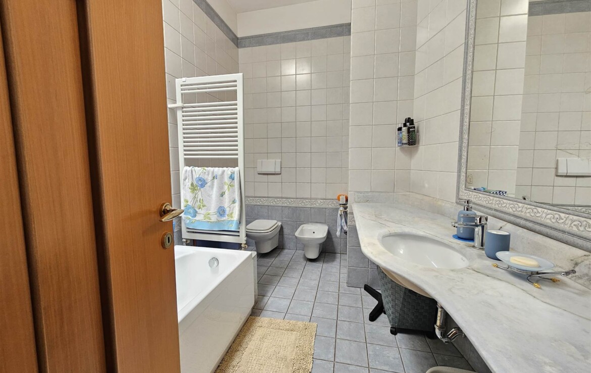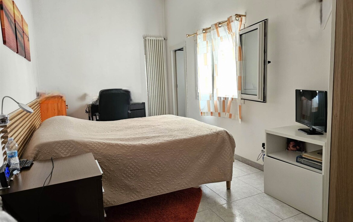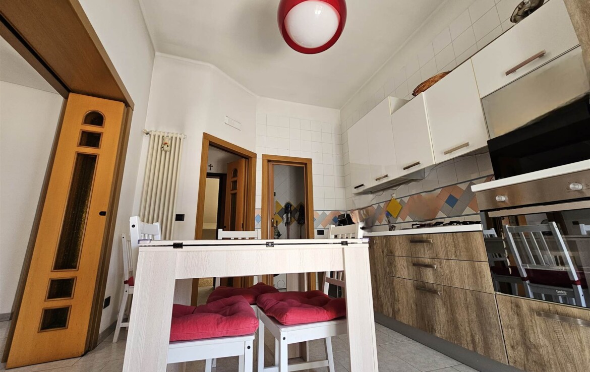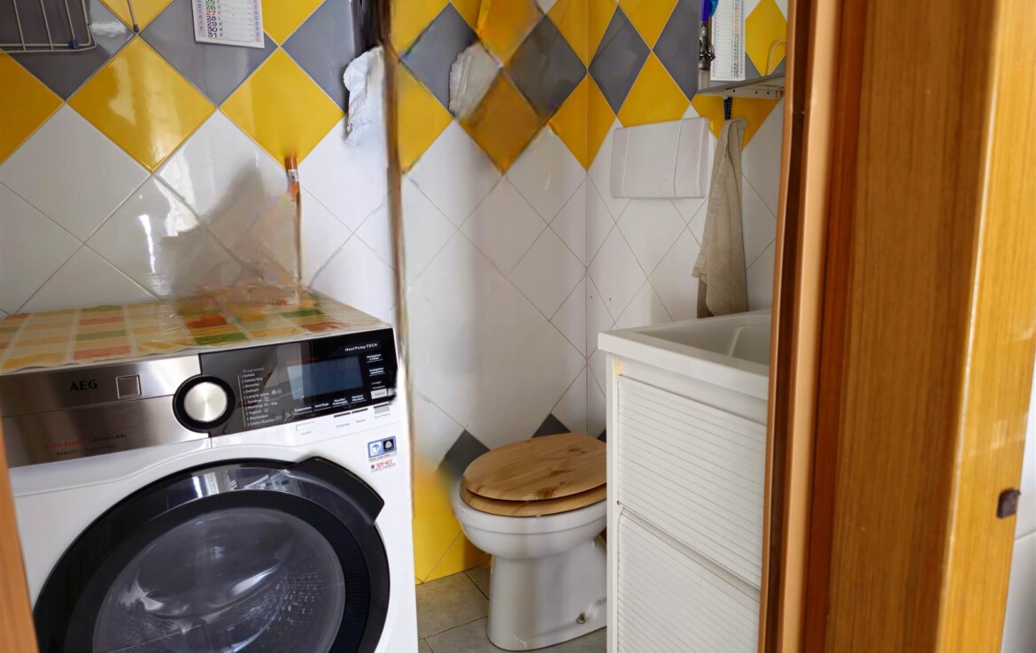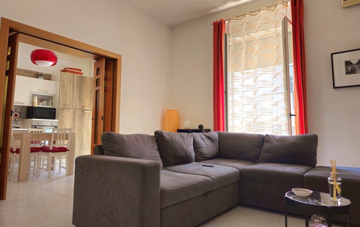 L’ingresso conduce a un comodo disimpegno, da cui si accede alla cucina abitabile, a un salottino confortevole, a un bagno di servizio, a una camera matrimoniale, una cameretta, un bagno padronale e un ripostiglio.