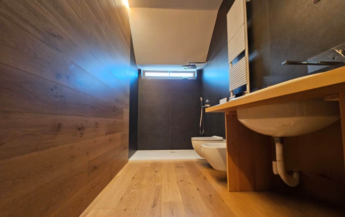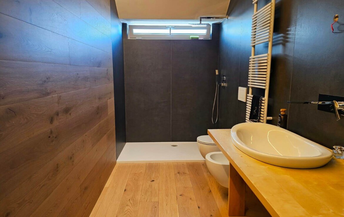Ampio bagno finemente rifinito, completo di ogni comfort.