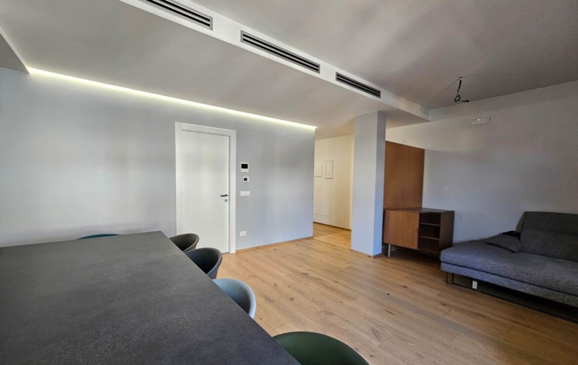 Il sistema di climatizzazione e riscaldamento canalizzato, alternativo al classico impianto a gas con termoarredi, garantisce massimo benessere e efficienza energetica in ogni stagione.