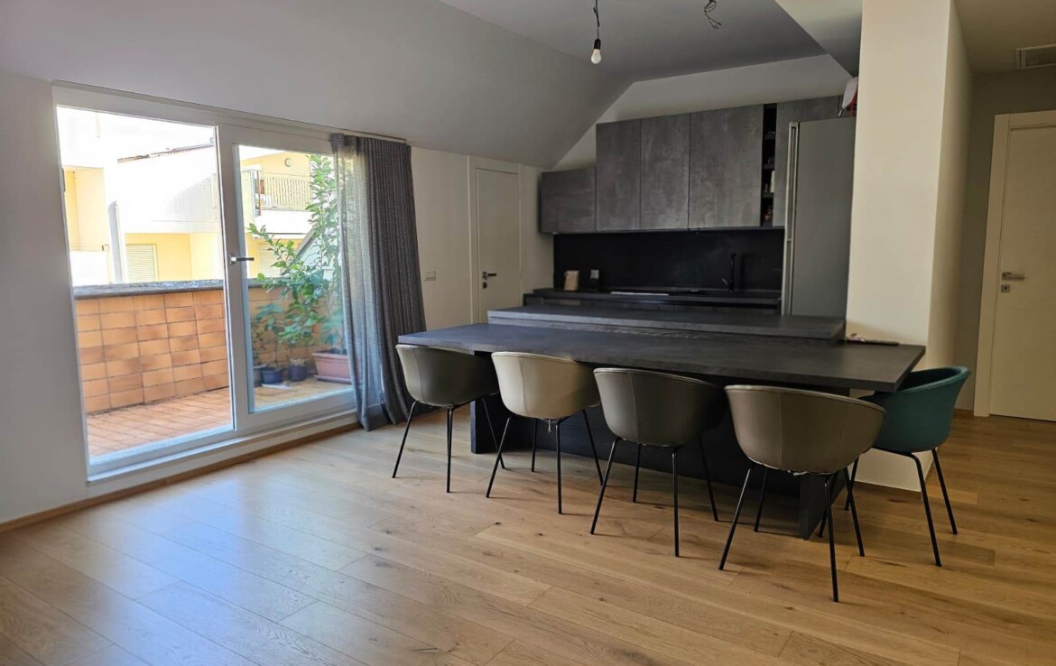 Ampia zona living open space con cucina importante (non inclusa nel prezzo) e affaccio su balcone semi-abitabile, perfetto per momenti di relax all’aperto;