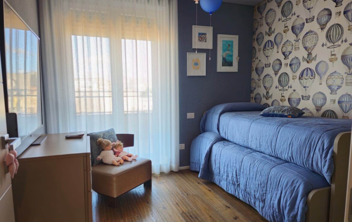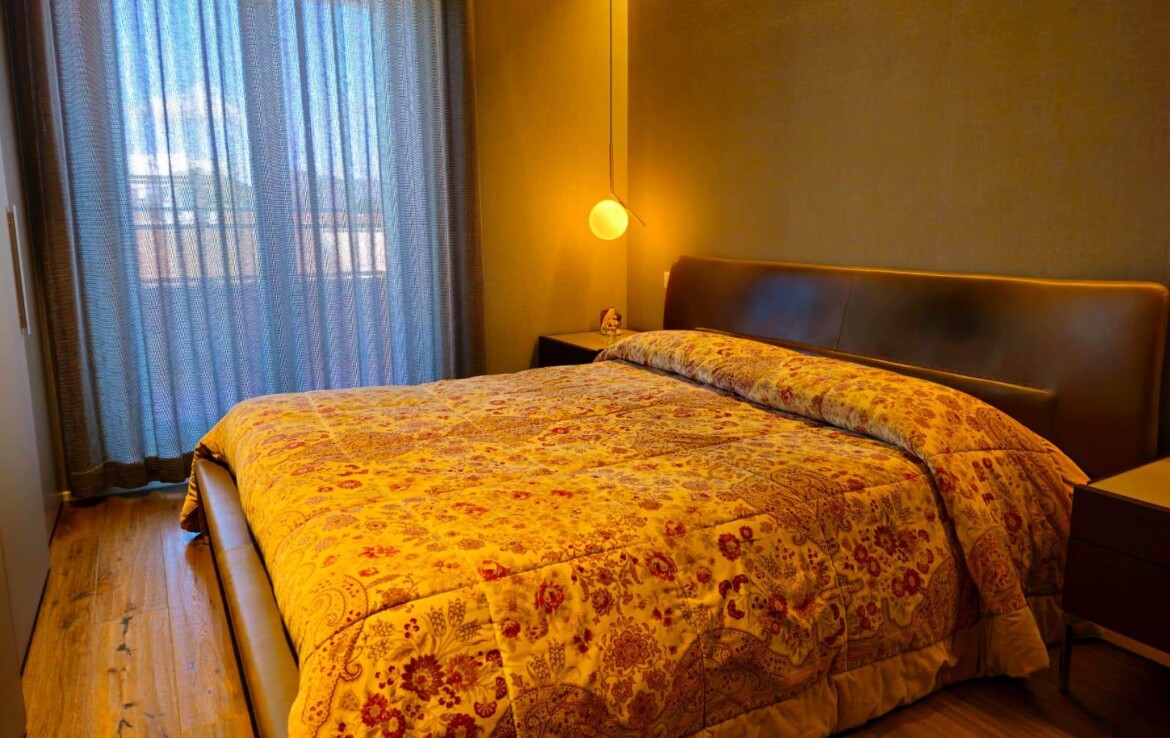 La zona notte, rifinita con parquet in listoni di rovere firmato Giordano, si compone di: