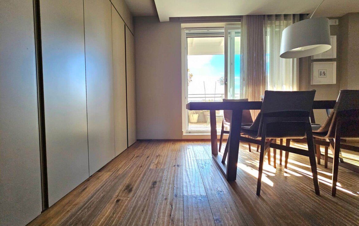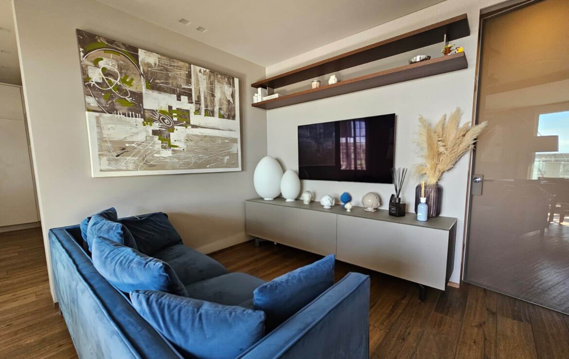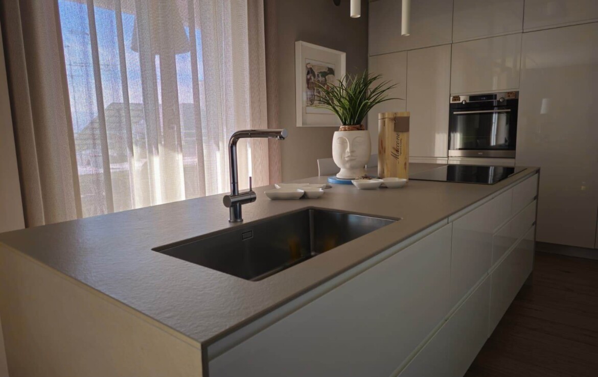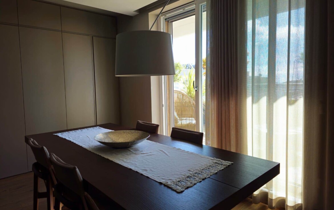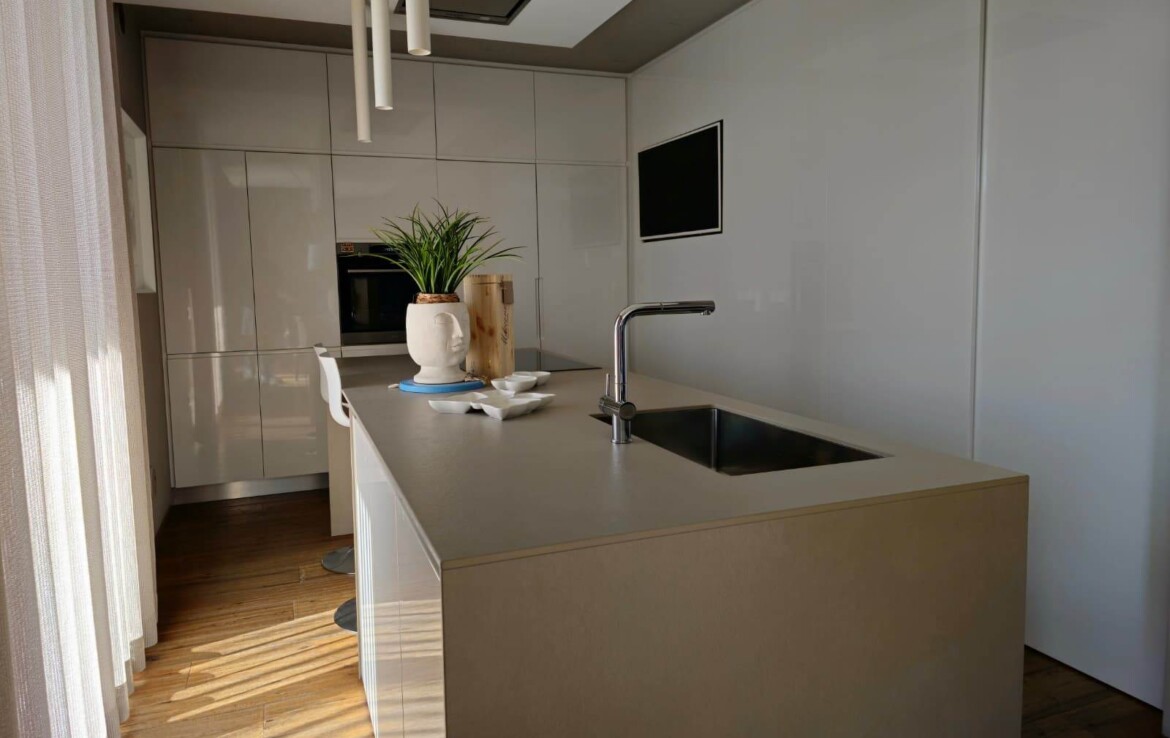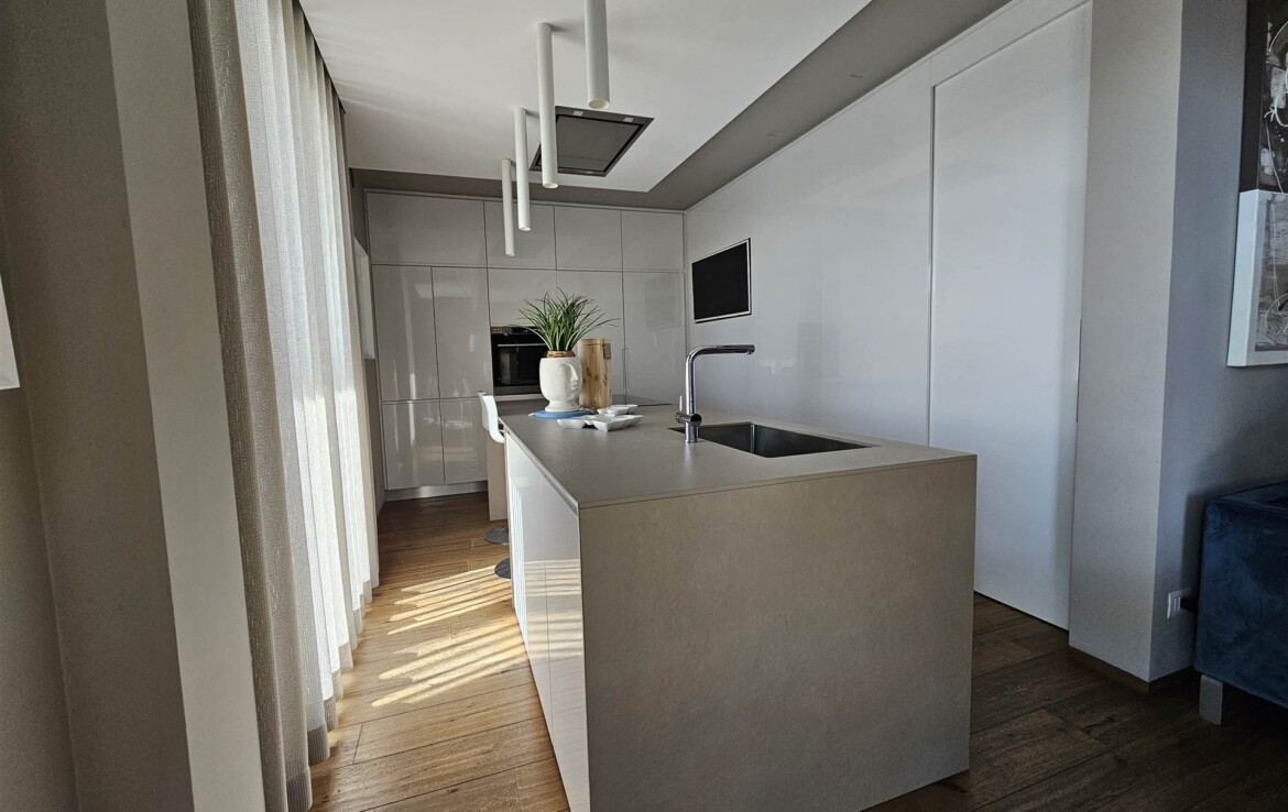 L’ingresso introduce in un ampio e affascinante reparto giorno, caratterizzato da un’accurata distribuzione degli spazi e da arredi di pregio. L’ambiente ospita un confortevole angolo salotto con parete TV, un’area pranzo ben definita e una importante cucina ad isola con piano snack di generose dimensioni, fulcro funzionale ed estetico dell’abitazione.