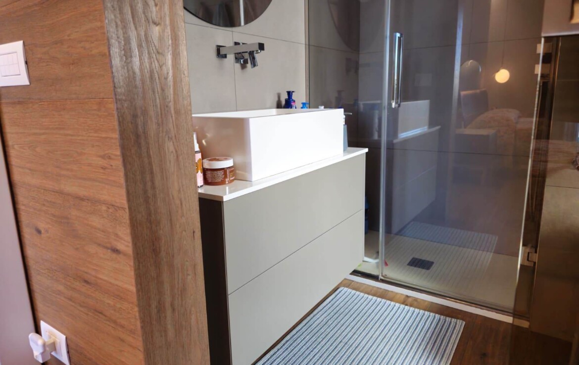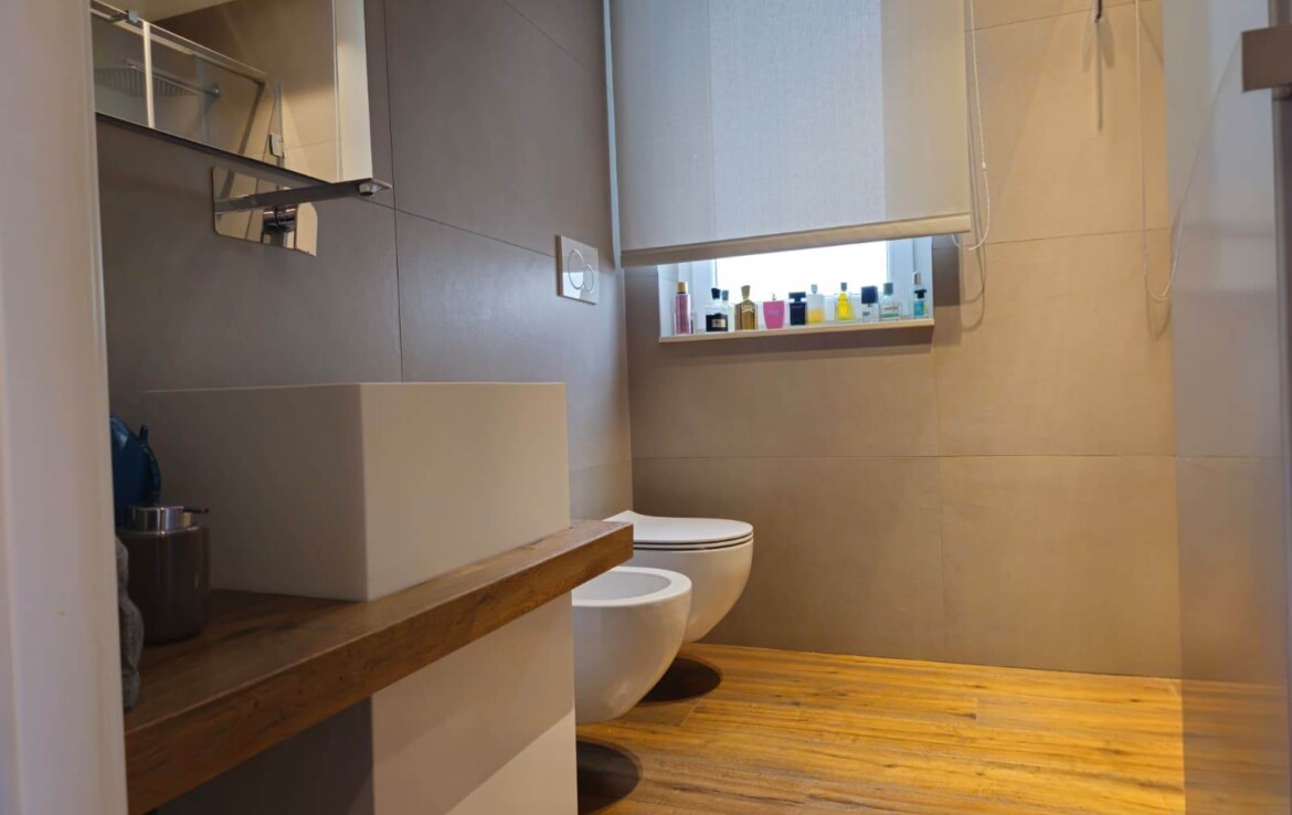 La veranda esterna è ulteriormente valorizzata dalla predisposizione di una piccola ma funzionale cucina esterna, perfetta per vivere appieno lo spazio all’aperto durante la bella stagione.