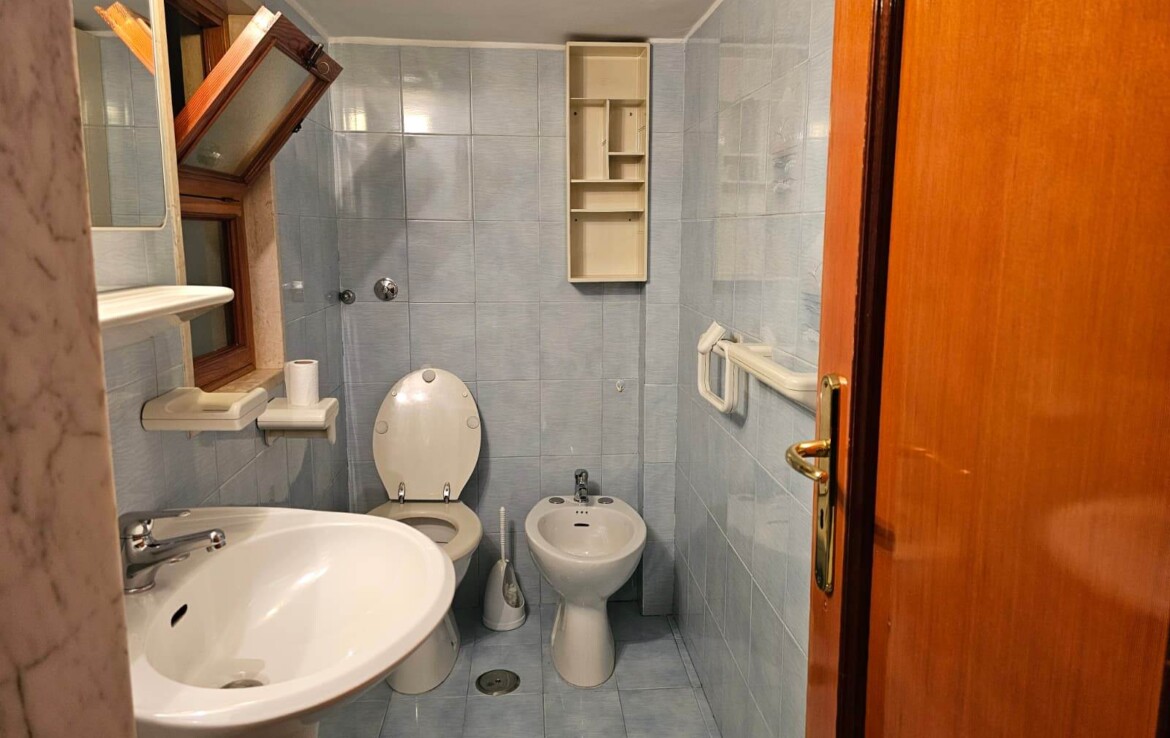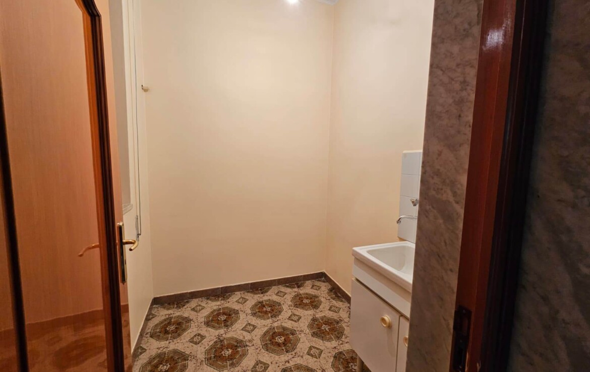 Comodo garage con bagno di servizio, ideale anche come area hobby o zona multifunzionale.