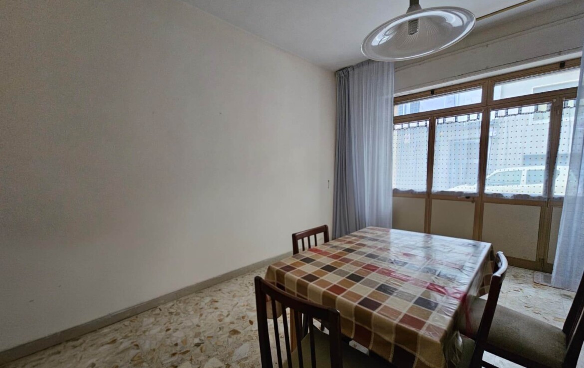 Accogliente ingresso in soggiorno pranzo con balcone, cucinotto, due camere da letto e bagno.