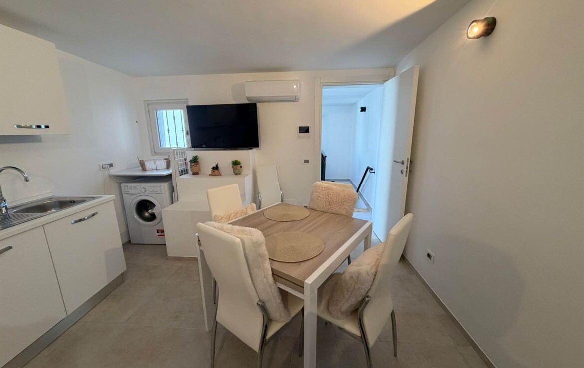 Primo piano (31 mq): luminosa zona living con cucina a vista e accesso a uno splendido terrazzo di 12 mq, ideale per momenti di convivialità o relax all’aperto.