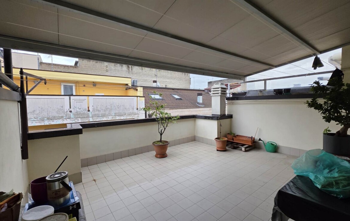 Soffitta con accesso a ampio terrazzo, uno spazio perfetto da vivere all’aperto e ideale per realizzare una zona relax o conviviale.